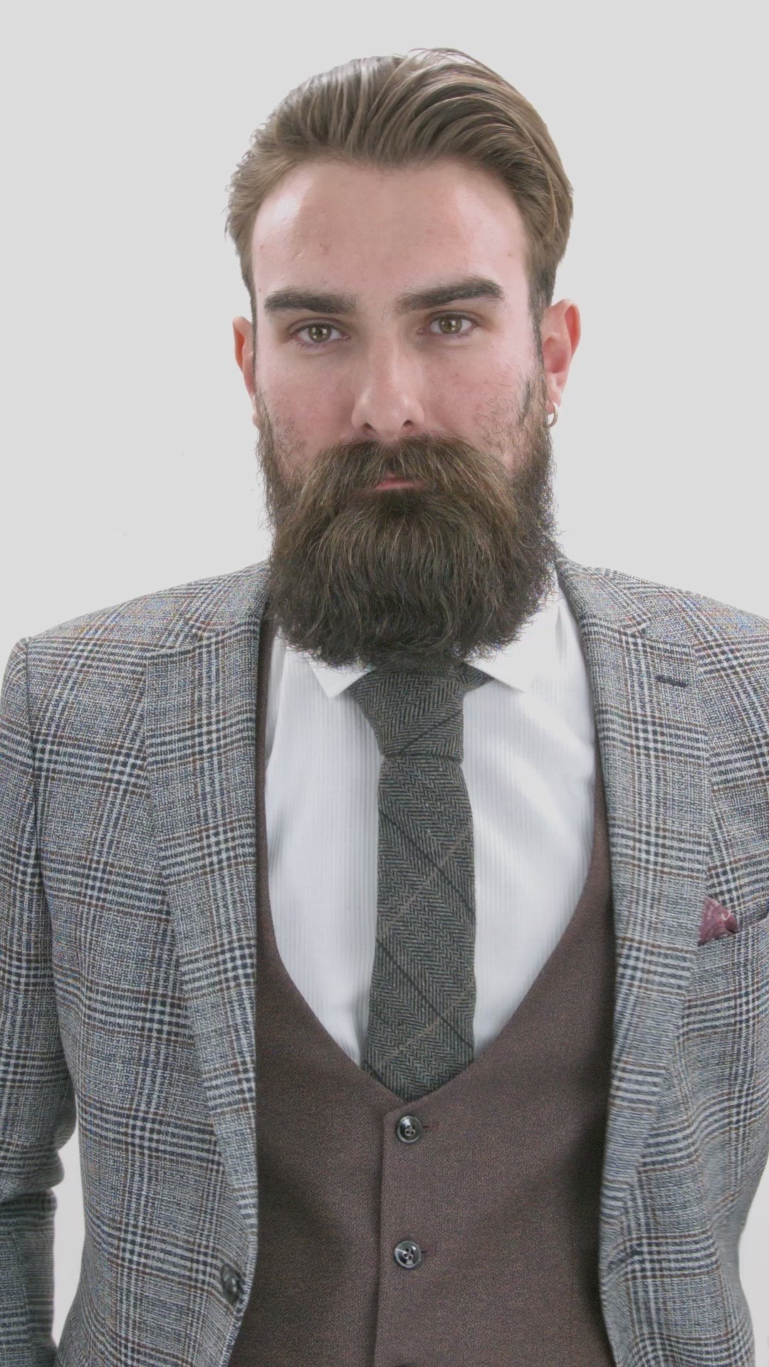 Happy Gentleman ELEGANTER dreiteiliger Wollanzug mit kontrastierender brauner Weste