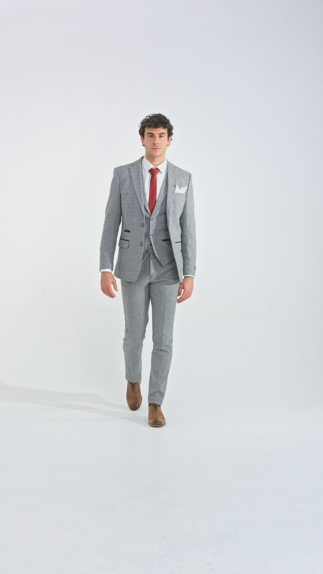 Hellgrauer 3-teiliger Tweed-Anzug mit Fischgrätenmuster für Herren - STZ11