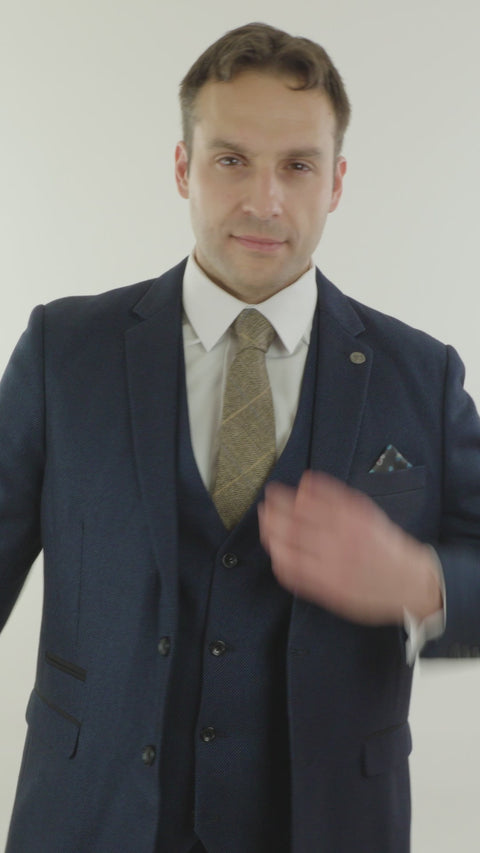 - Maßgeschneiderter 3-teiliger Herrenanzug in Blau und Schwarz